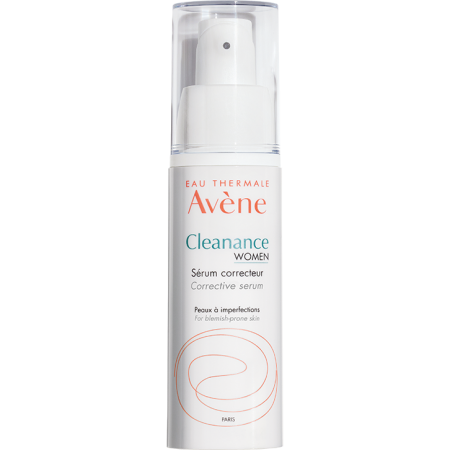El sérum corrector AVÈNE CLEANANCE WOMEN está diseñado específicamente para mujeres adultas. Gracias a su composición única, trata eficazmente las imperfecciones faciales, como puntos negros y acné adulto, además de prevenir su recurrencia. Este nuevo sérum ayuda a reducir las imperfecciones, suaviza la textura de la piel y minimiza la apariencia de los poros. Es ideal para pieles con imperfecciones. El concentrado de ingredientes activos en el sérum permite una acción multi-eficaz: - SynoveaTM HR ayuda a reducir las imperfecciones y limita la oxidación del sebo*, causante de la aparición de puntos negros. - P-Refinyl cierra los poros. - Los ácidos glicólico y láctico alisan la textura de la piel.